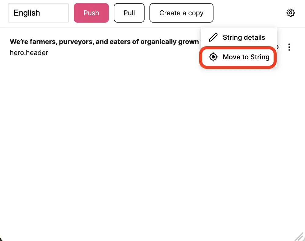 If you want to locate a string on the page, click on the more button and then on the Move to string button, which will align your Figma view so that the text is in the center of your screen.