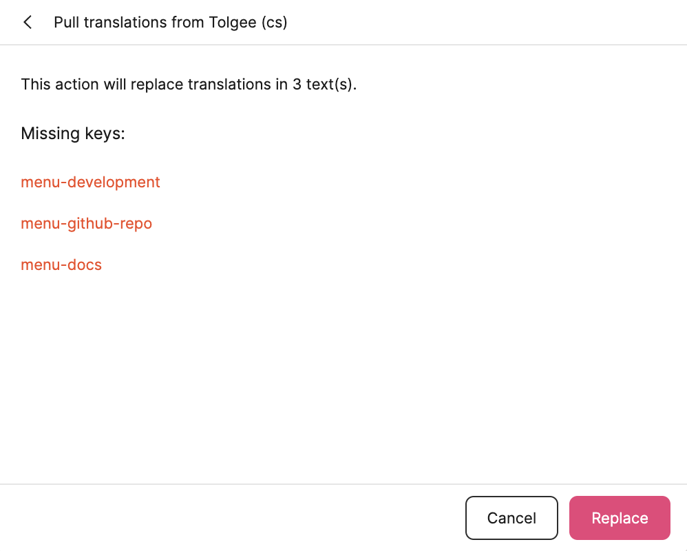 If there are some keys with missing translation in the selected language, they will be displayed on this screen.